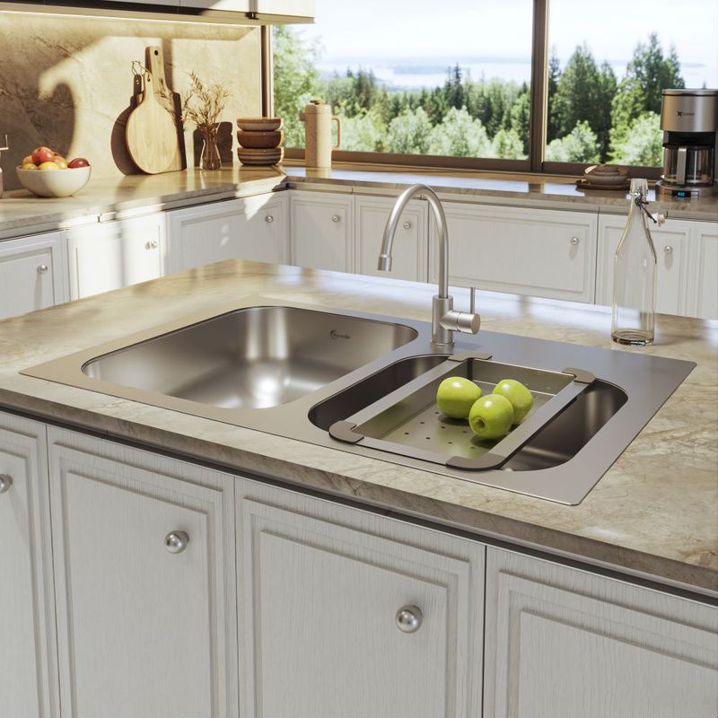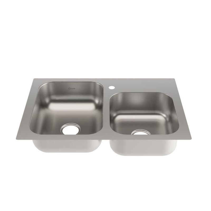 Lavaplatos doble tanque en acero inoxidable que cuenta con dos tipos de instalación, lo puedes submontar o empotrar en tu mesón de cocina según tu preferencia, también tiene una profundidad en la poceta que brinda el espacio perfecto para usar cómodamente y con menos salpique de agua.